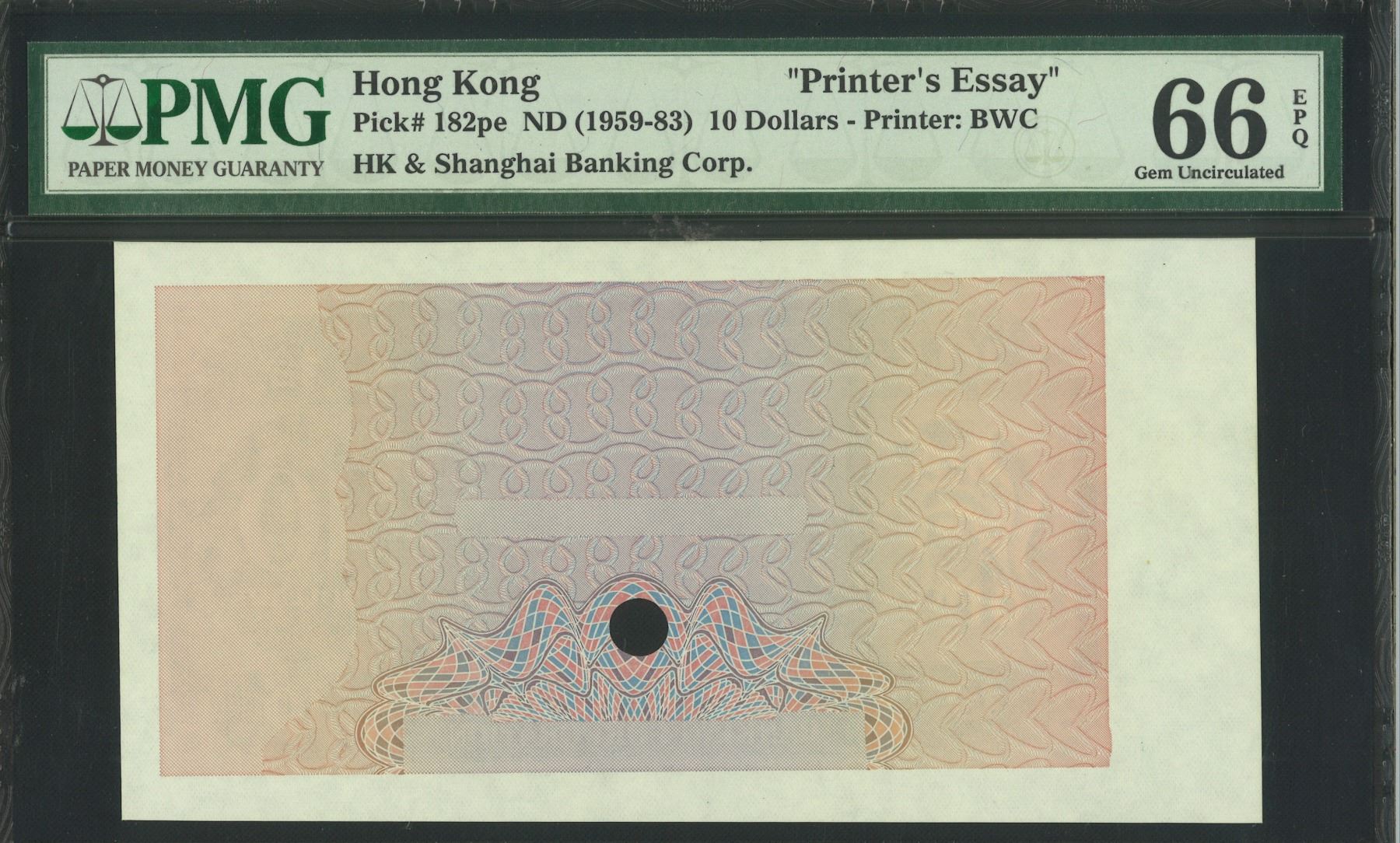 HK & Shanghai Banking Corp. ND(1959- 83), $10 Print Essay. PMG 66EPQ.