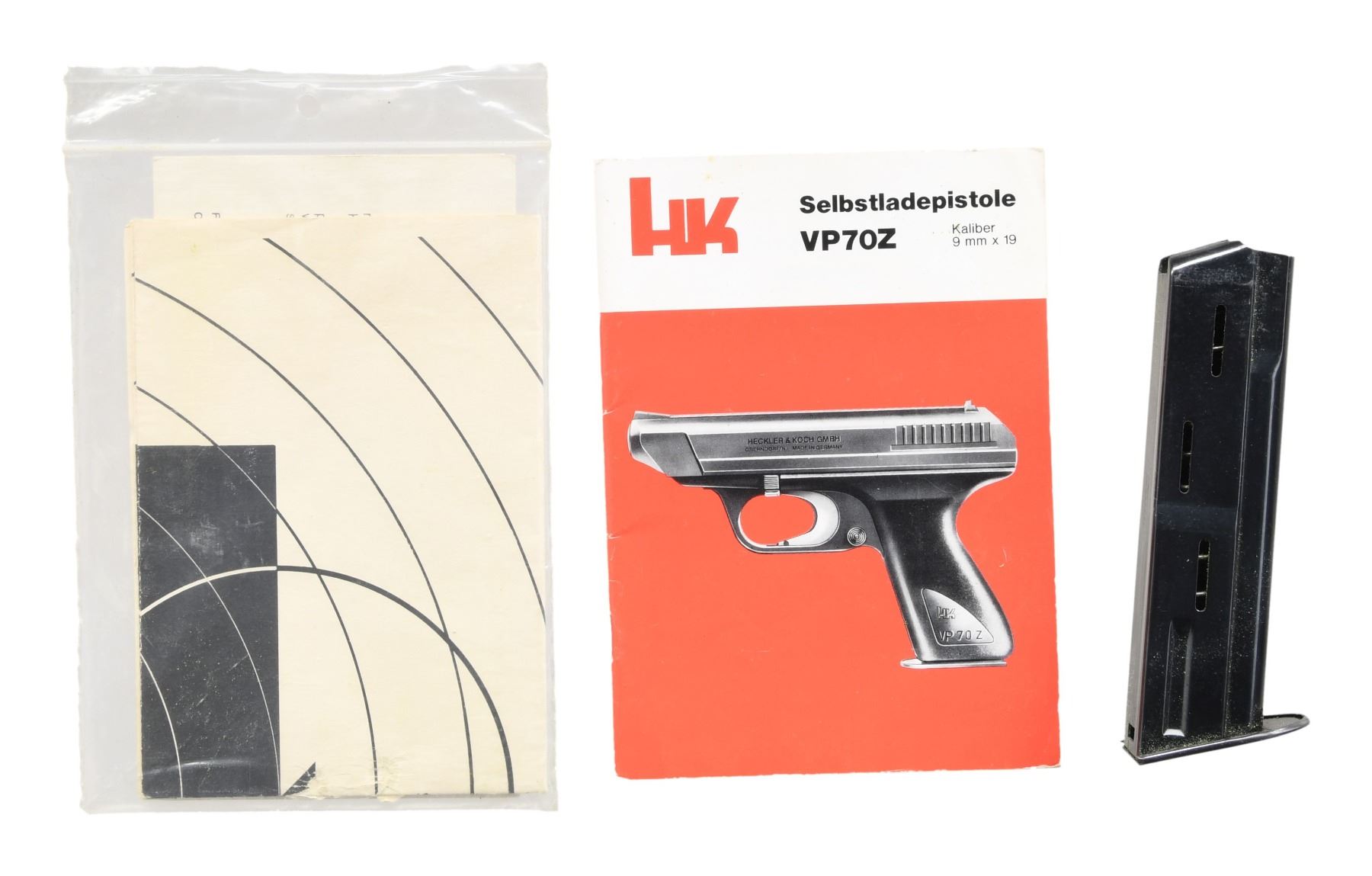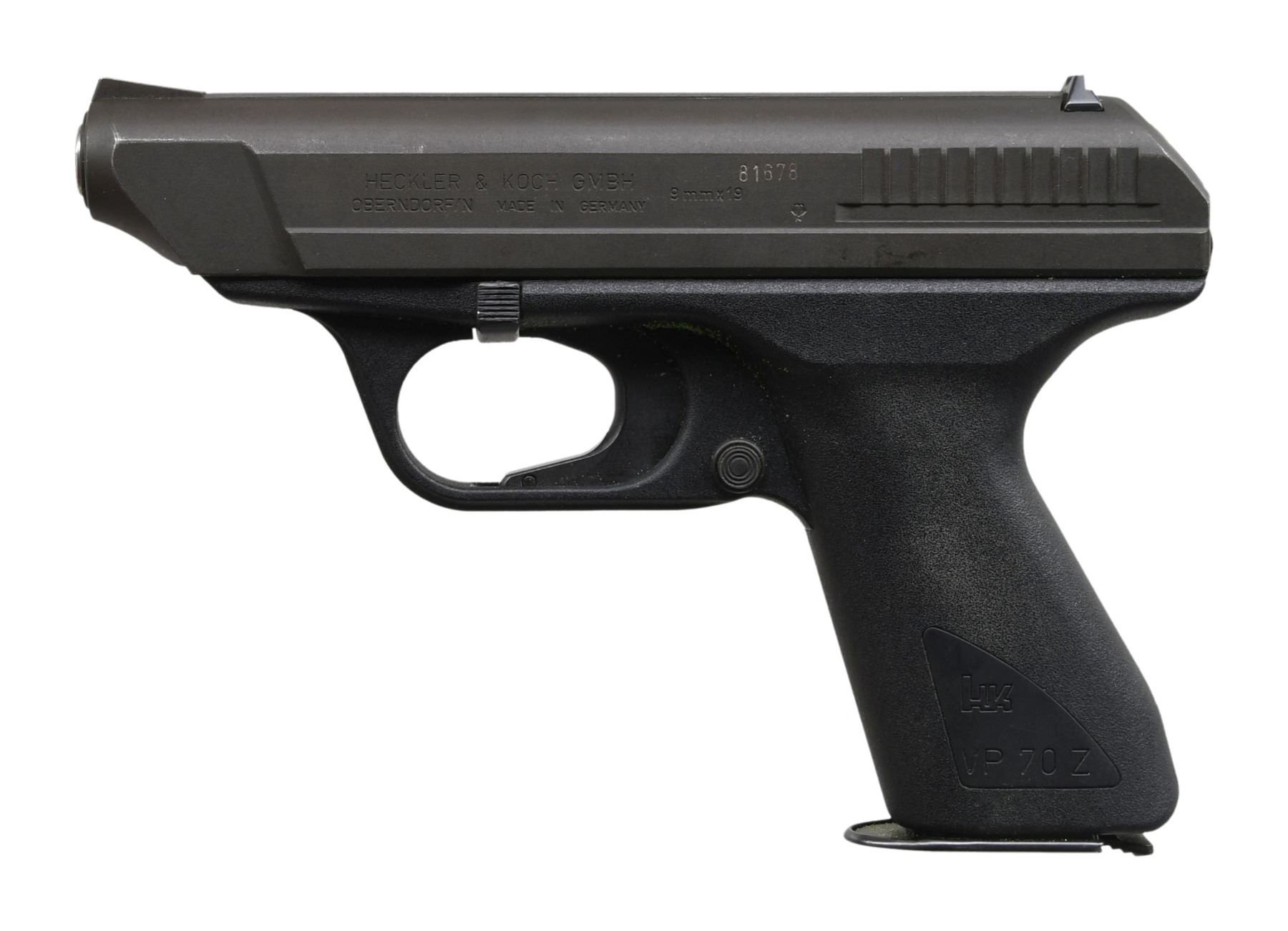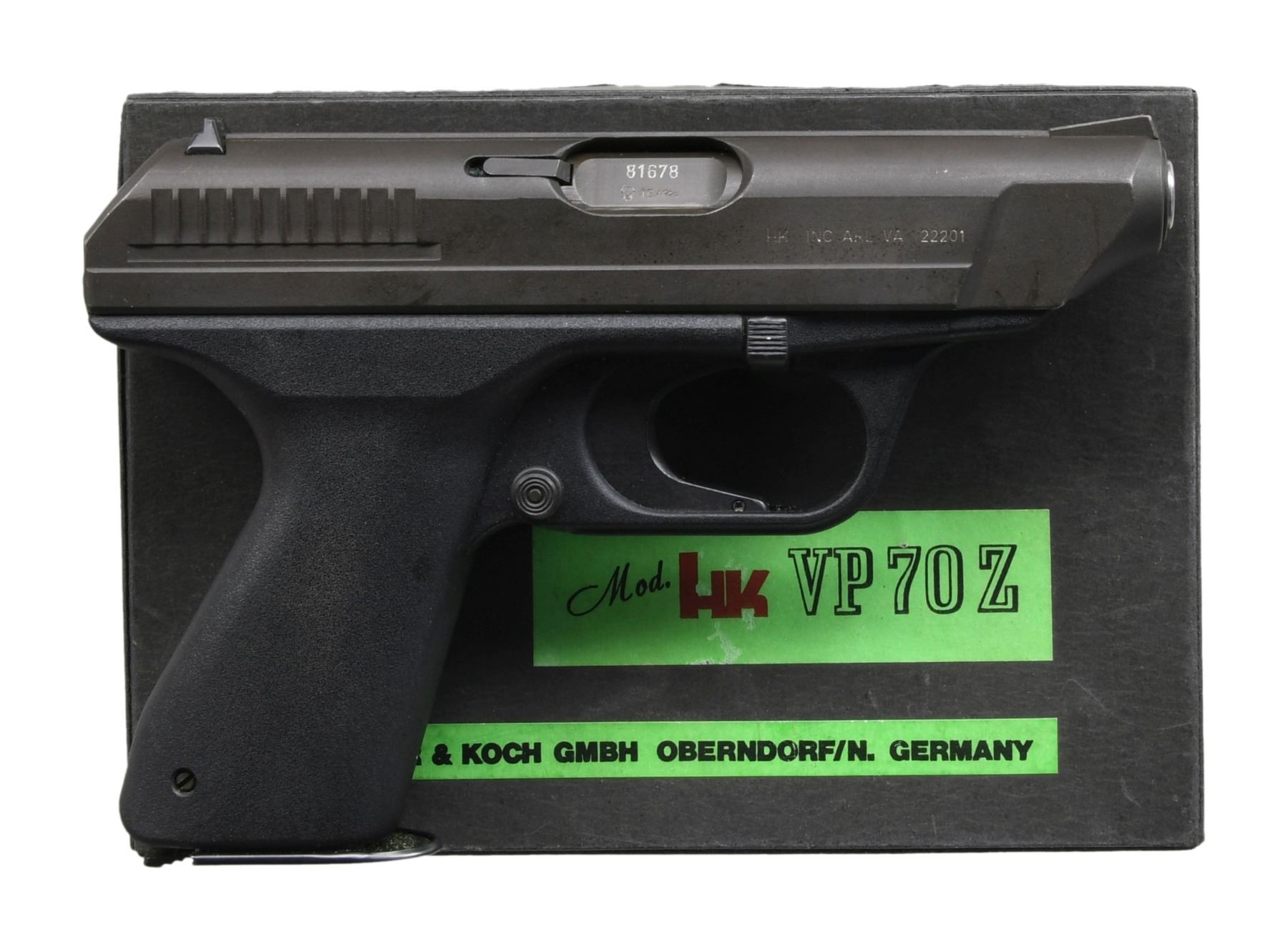 Cal. 9x19 S# 81678 (IB = 1981). This model features a matte black finish. Barrel length is 4.6 inches. Equipped with standard fixed front and rear sights. The frame includes a magazine release button on the heel of the grip. Polymer frame without grips. MAGS: 2-18 Rds. UNATTACHED ACCESSORIES: Factory box, manual, additional documentation. CONDITION: Overall condition is near excellent. Slide retains about 95% of its original matte black finish. Frame shows approximately 95% finish coverage. Bore is bright with strong rifling. PROVENANCE: Lifelong Collection of Terrence McCarty. MODERN (24-201/MD) $700-$1,000