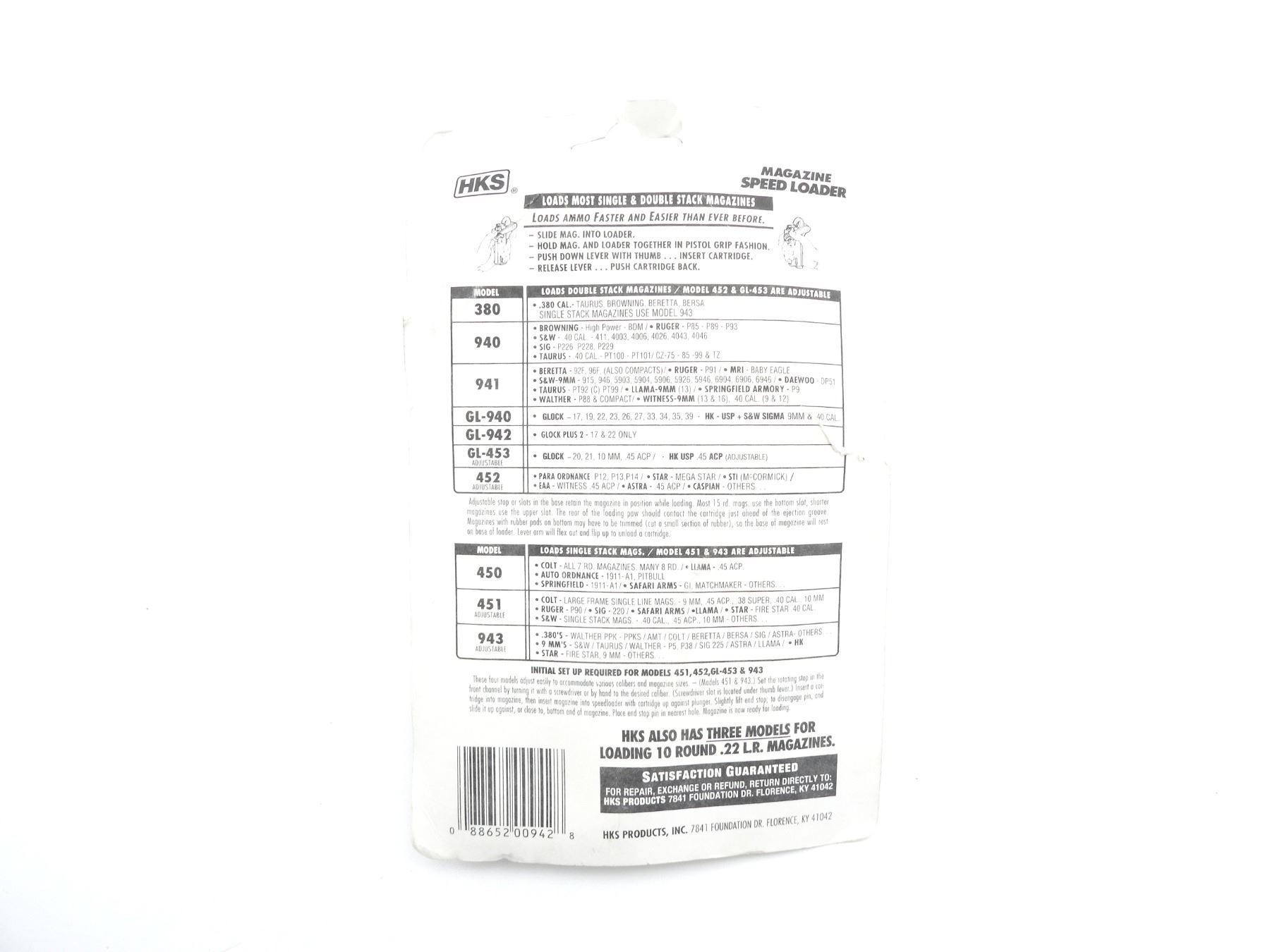 HKS GL-940 BROWNING HP / RUGER P85 / SIG 226 / ETC. 9MM / .40 CAL. MAGAZINE SPEED LOADER