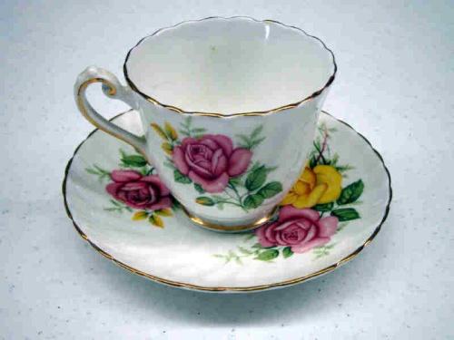 HM SUTHERLAND BONE CHINA (ENGLAND) PINK & YELLOW