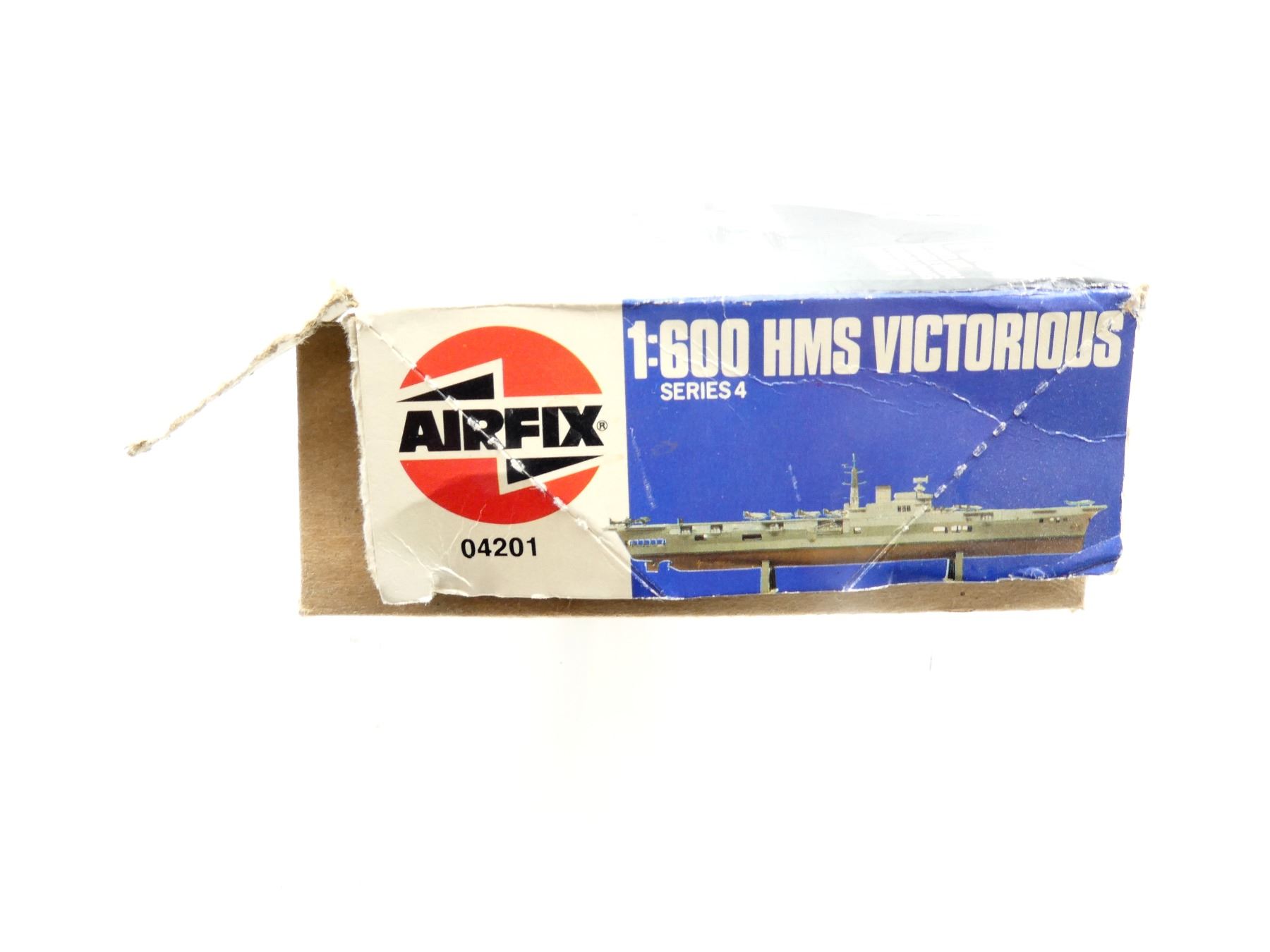 (1) HMS VICTORIOUS MODEL KIT, 1:600 SCALE IN ORIGINAL PACKAGING, MAY NOT BE COMPLETE / PIECES MAY BE MISSING. SEE PHOTOS.