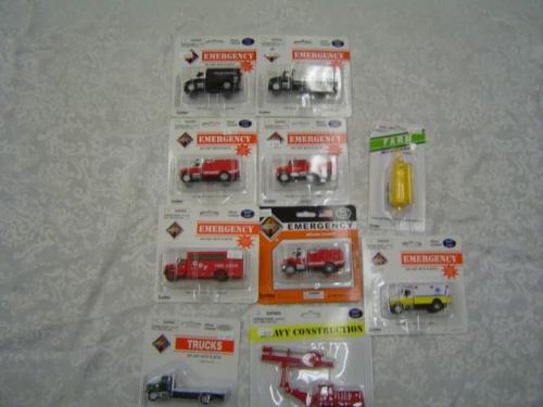 Boley 4503-71 Emergency Vehicle, 4130-37 Police Tactical, 4023-11 Fire Department Vechicle, 4036-17 C.D.F. Fire Crew, 4021-71 Emergency Vehicle, 4125-56 International Flat Bed Truck, 4122-78 Ambulance, 4131-37 Police Flat Bed, 2012-8 Water Tank on trailerBoley 2303-1 Rock Drill Red