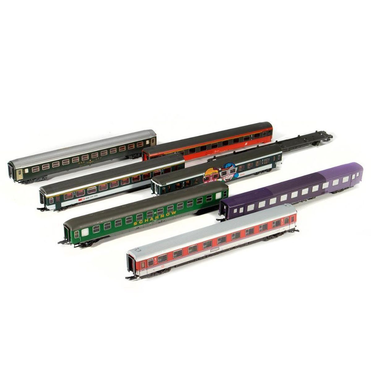 HO Scale (7) European Streamliner Passenger Cars and an extra chassis