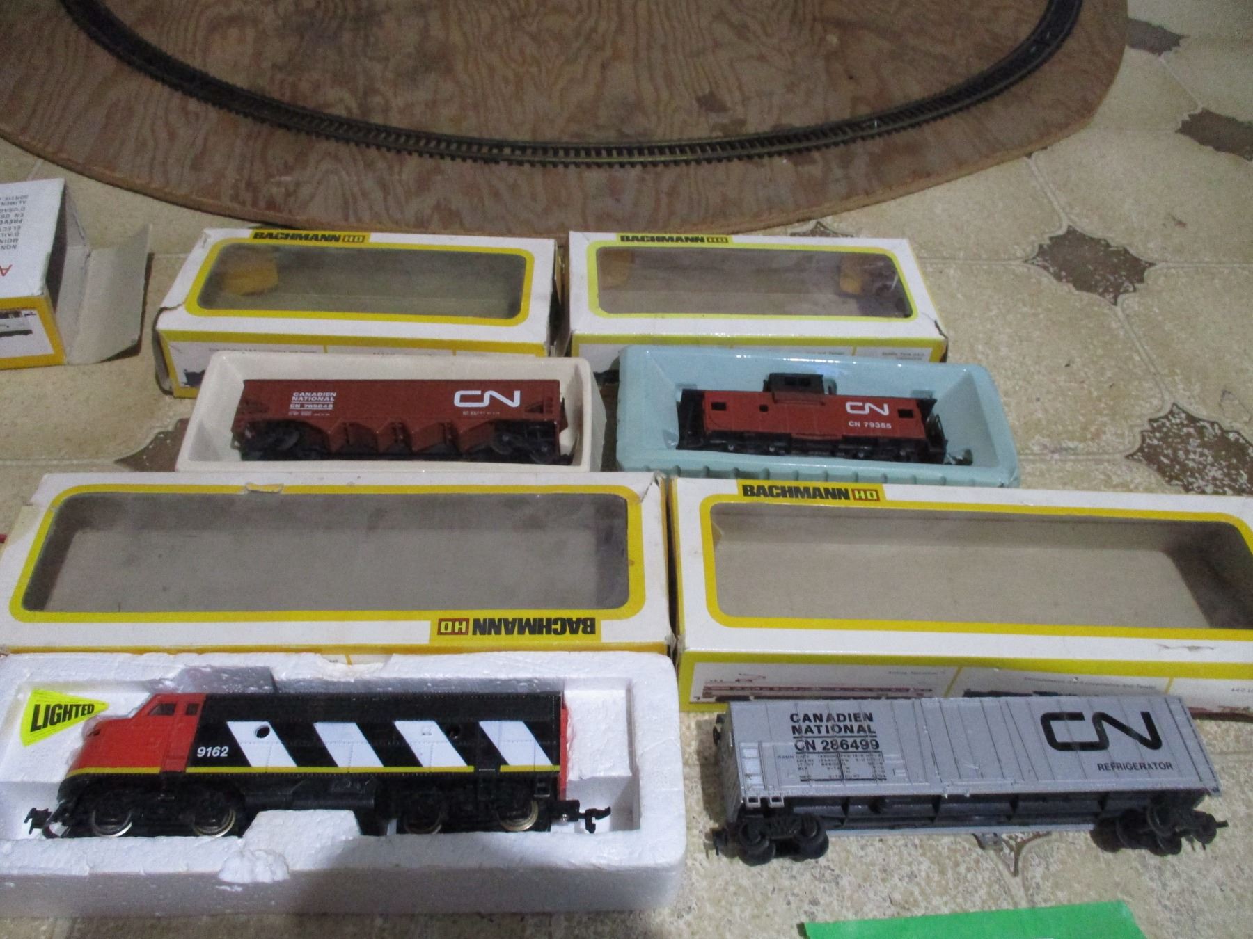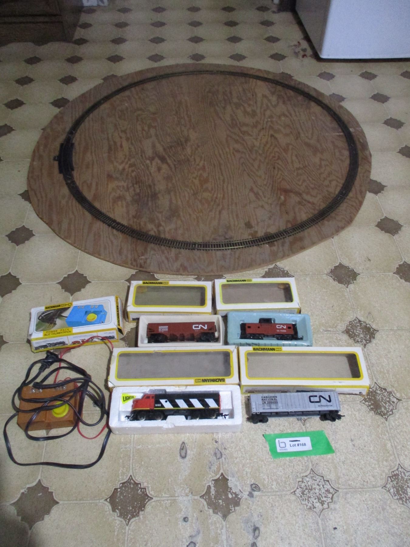 HO Scale Bachmann Electric Train and Powerpack w/ Track on 43" Board - As is