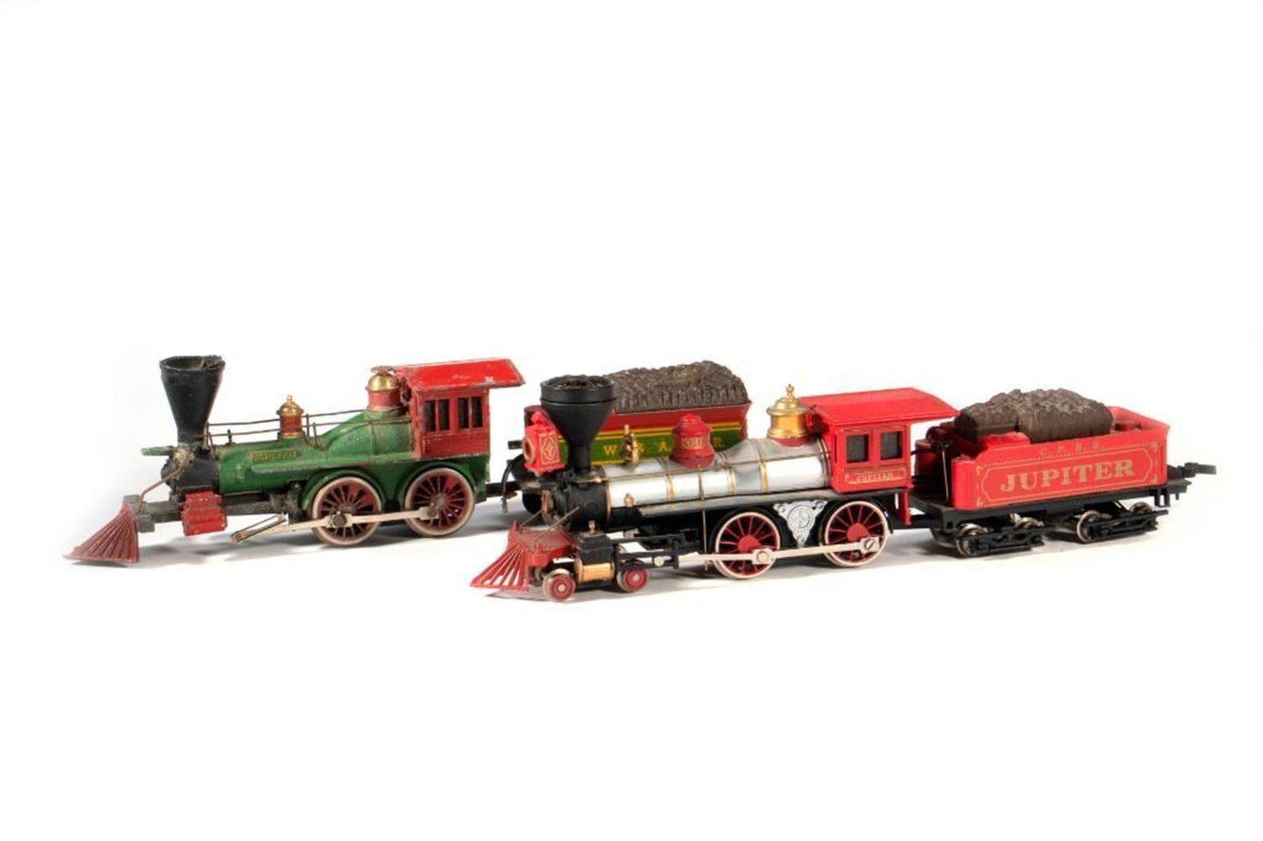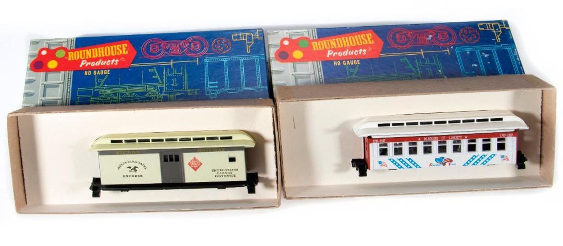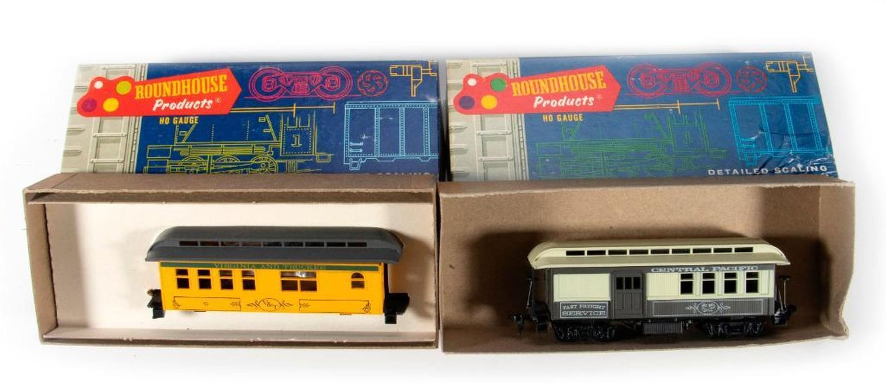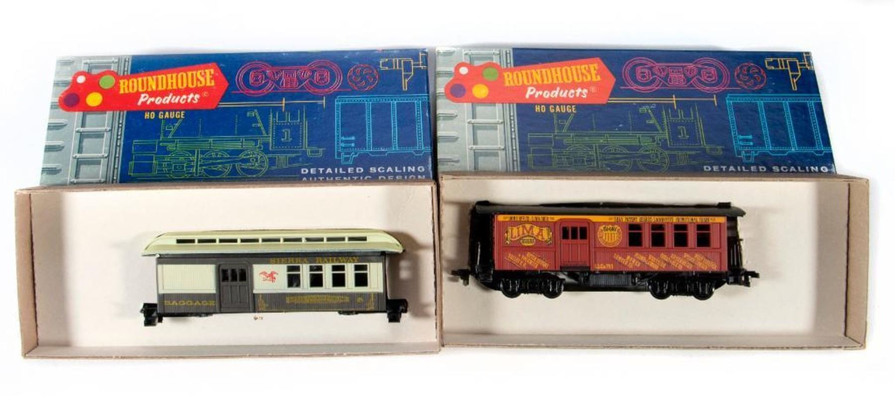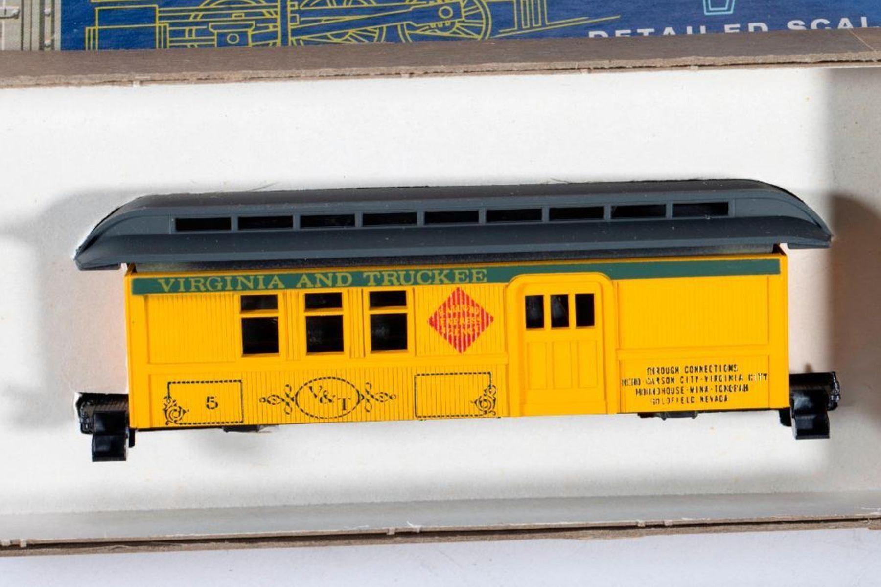 HO Scale Old Time Rolling Stock – Roundhouse: 3745 Overton Baggage Central Pacific, 3715 Overton Combine Sierra Railroad, 3728 Overton Observation Sierra, 3705 Overton Coach Central Pacific, 3210 Freedom #3 Passenger Car, 3725 Overton Combine Central Pacific, 3717 Overton Combie Virginia and Truckee, 3710 Overton Coach Virginia and Truckee, 3748 Overton Baggage Sierra Rail Road, 3708 Overton Coach Sierra Rail Road, 3735 Overton Observation Central Pacific, 3737 Overton Observation Virginia and Truckee, 1014 Lima Company Passenger Car, Mantua-Tyco Santa Fe 76 Combine, Mantua 1860 Car Western and Atlantic Combine, Mantua Western and Atlantic 4-4-0 Locomotive and Tender, Mantua-Tycp Central Pacific Coach, Bachmann Jupiter 4-4-0 Locomotive and Tender.