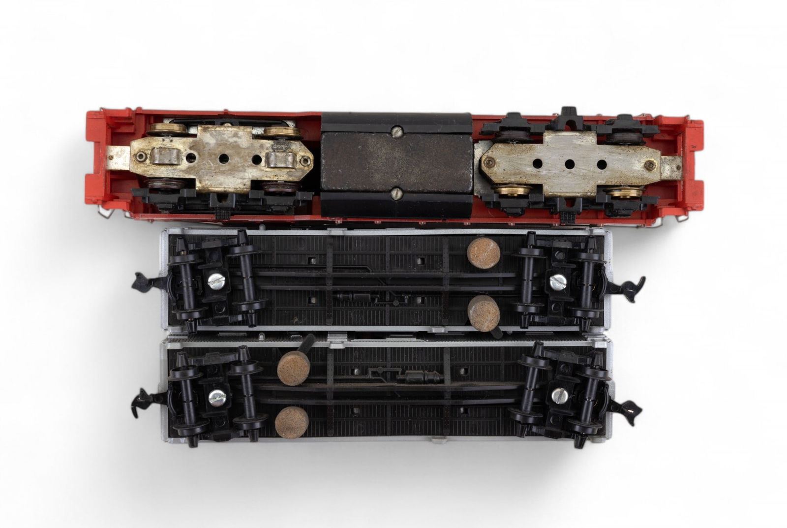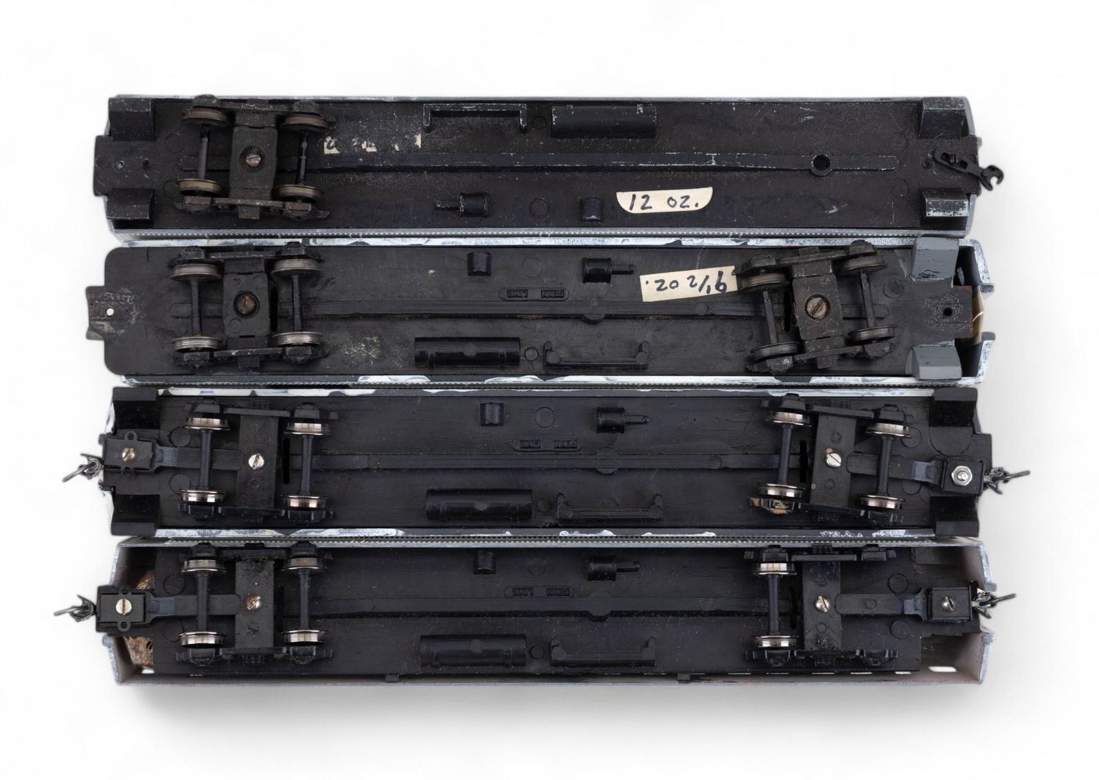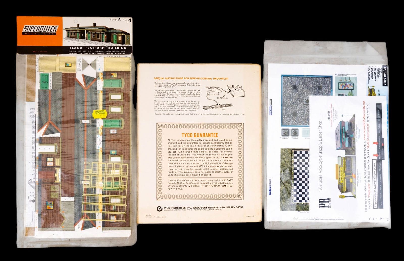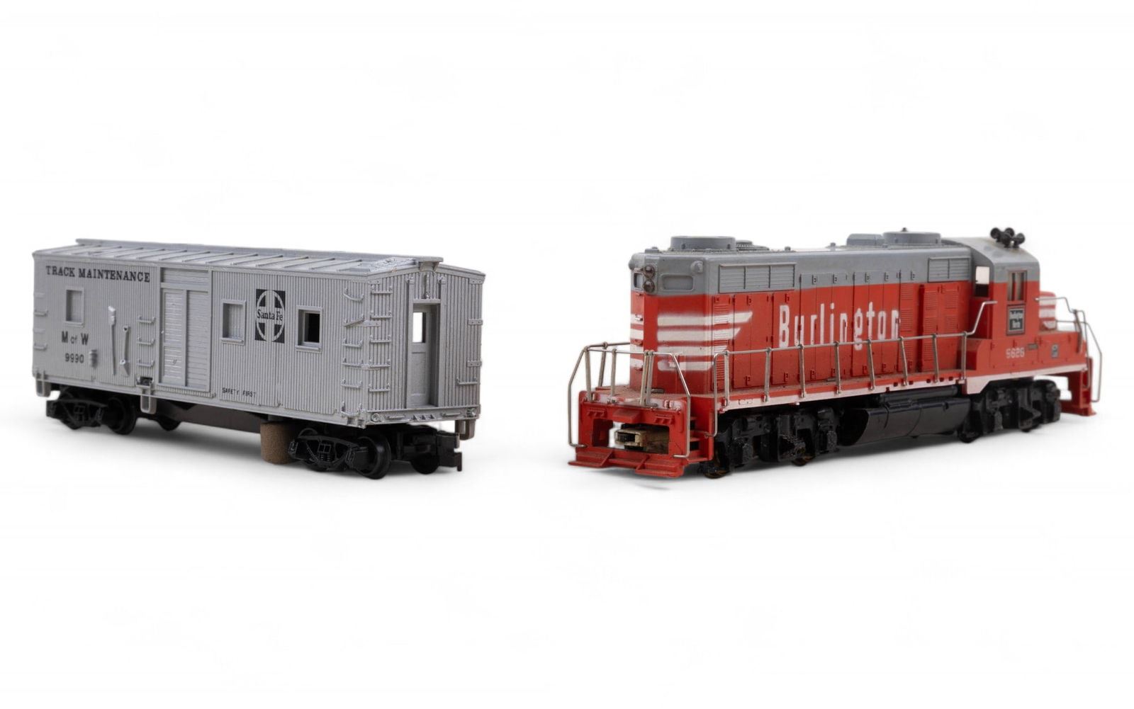 Features a Varney brand "Casey Jones" engine and tender in original box with wear and loss consistent with age. 2 Athearn brand Sante Fe passenger cars - 1 in original box and 1 in Balboa box. 4 Penn Line passenger cars - for parts. 1 Burlington diesel engine with wer and loss. 2 Santa Fe "Track Maintenance" box cars. 1 Daron brand MTA NY motorized Subway set NIP (not HO scale). 1 Corgi Classics "Denver Fire Department" truck NIB.2 paper unassembled paper model kits re also included.