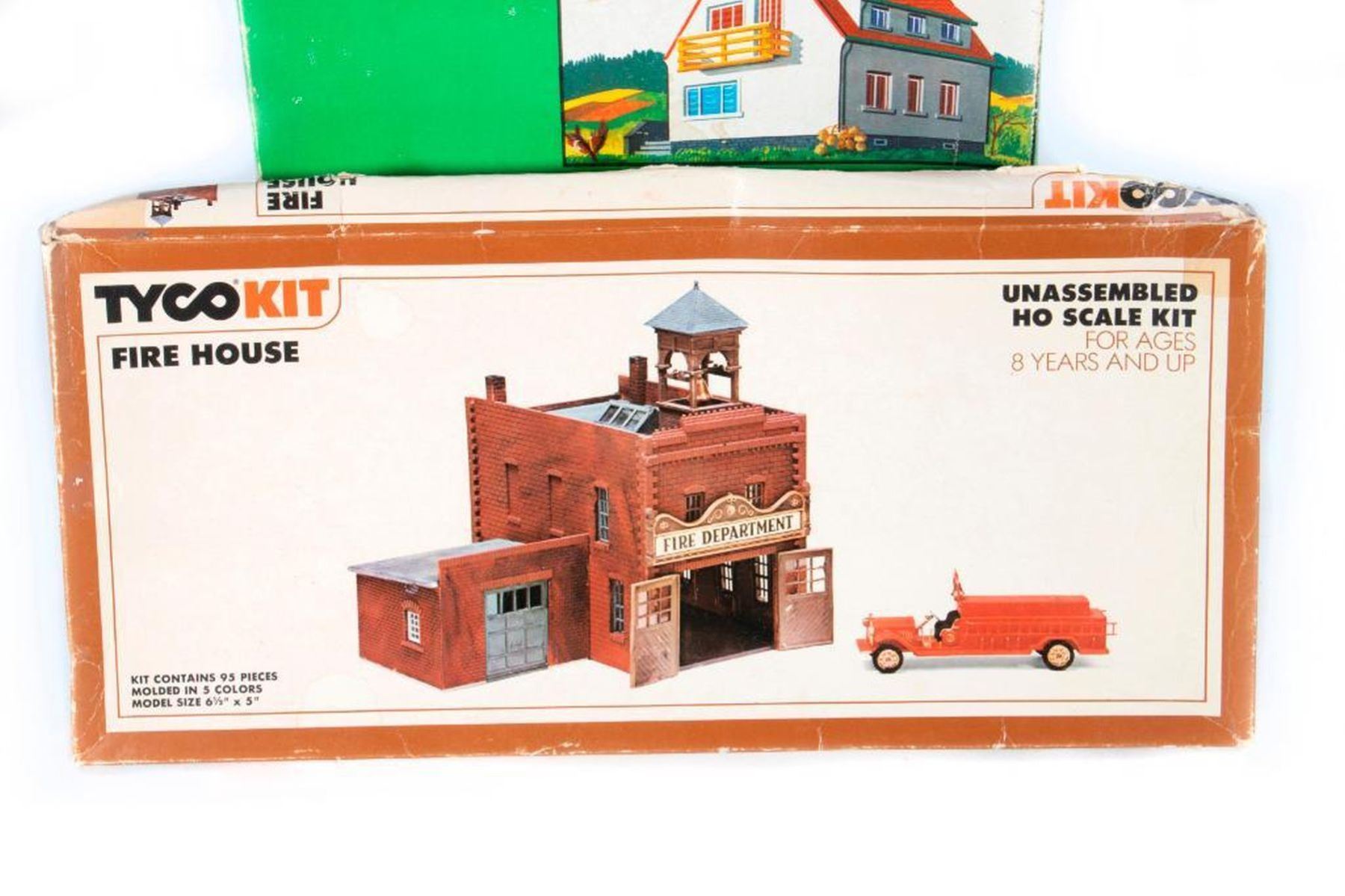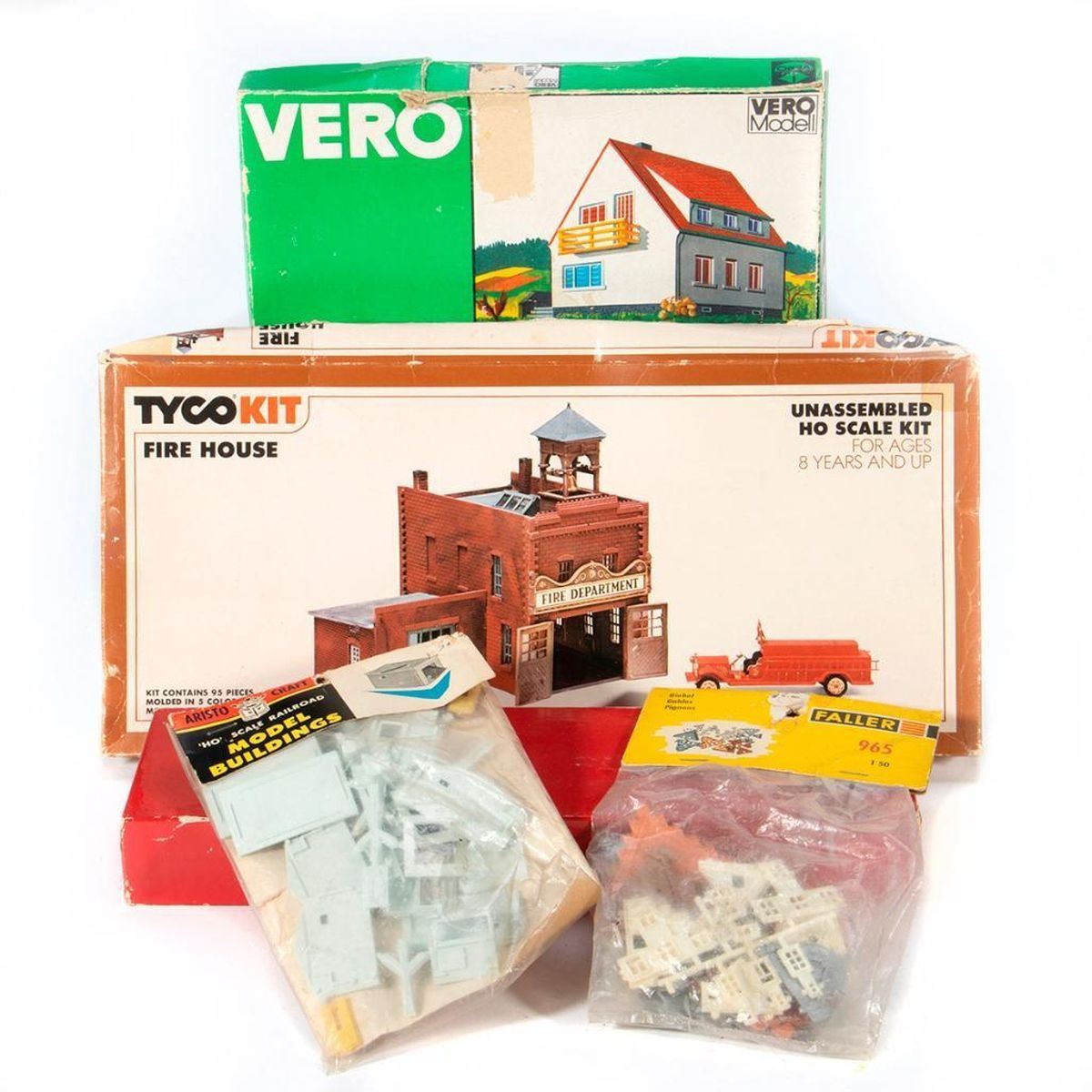 HO Structure Kits-Faller 965 Gables, Aristo Craft Garage, Tyco Fire House, Vero House, HD Scale Models Modern Turntable, Atlas Trackside Shanty