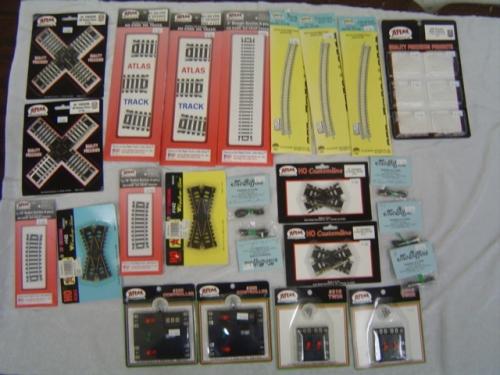 Atlas2-177 12 1/2 Crossing N/S, 821 9" straight(6), 2-835 1/3 18 Radius (4), 143 30 degree Crossing brass, 142 25 degree Crossing Brass, 2-176 90 Degree Crossing N/S, 2-174 45 degree N/S Crossing, 2- 220 Controller Electrical, 2- 210 Twin Electrical, 6- 55 Insulated Rail Joiners(24)3-845 18" Radius Terminal track, 5 Atlas Terinal Joiners