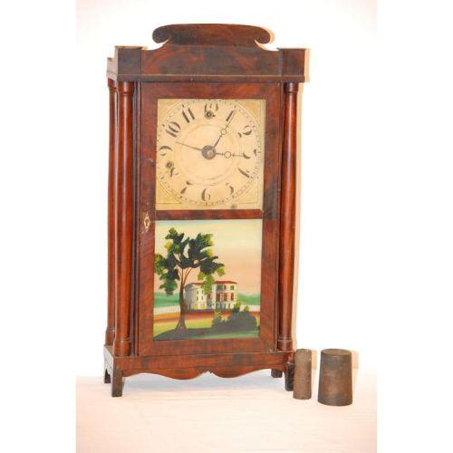 HOADLEY TIME PIECE ALARM SHELF CLOCK W/ 30-HOUR WOODEN MOVEMENT & A MAHOGANY CASE (24" T X 13" W) - WEAR, LOSSES, IMPERFECTIONS