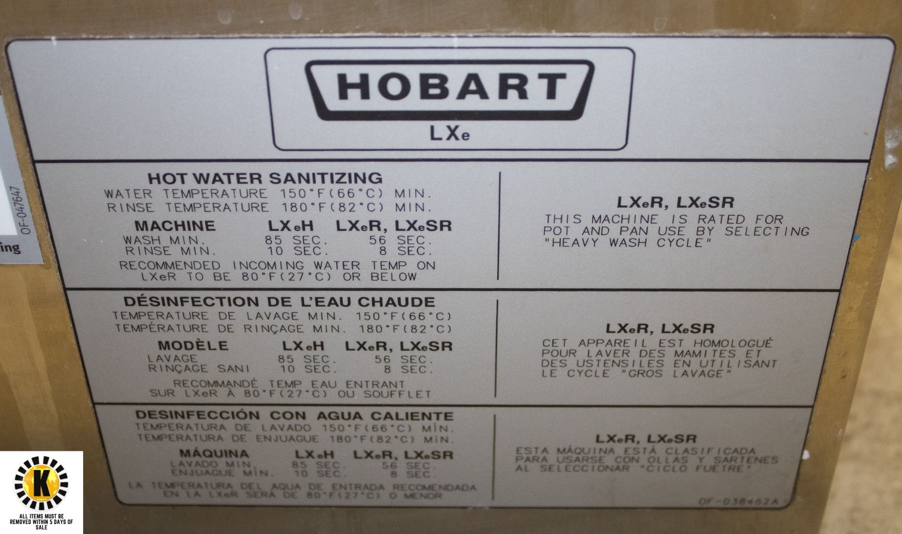 HOBART ADVANSYS UNDER COUNTER DISHWASHER
