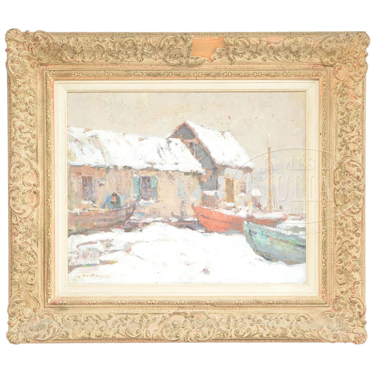 HOBART NICHOLS (American, 1869-1962) BOATYARD IN WINTER