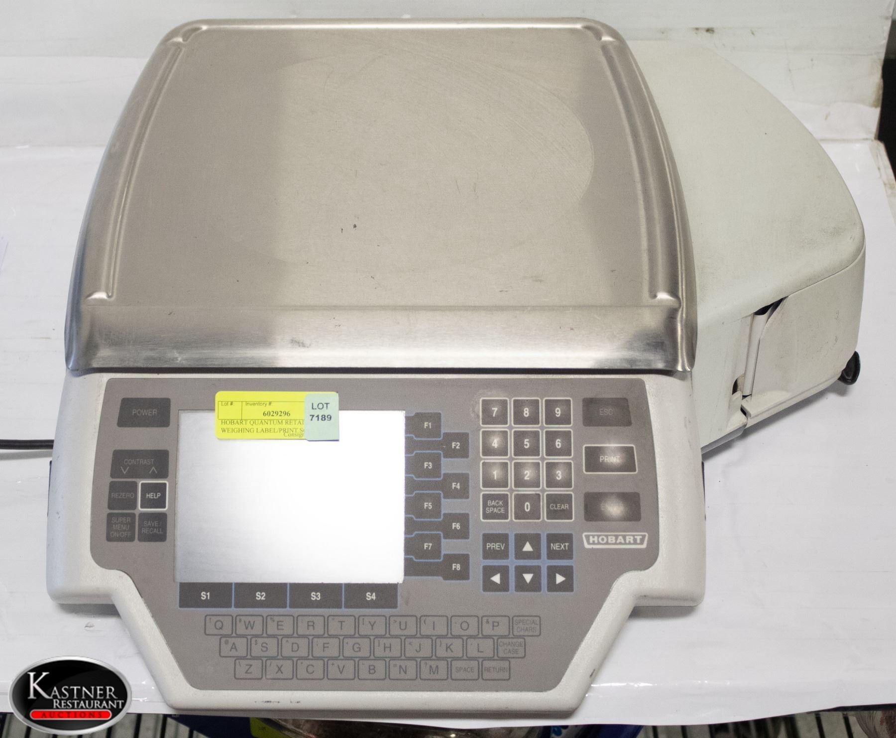 HOBART QUANTUM RETAIL WEIGHING LABELING PRINTING SCALE, MODEL# 029034-BJ, 120V, 60HZ, 1.5AMP, 180W, 21.5"X 18.5"X 6"