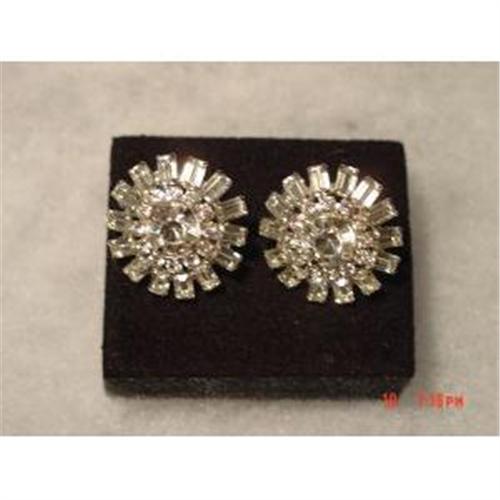 Here is a fabulous signed HOBE clear sparkling crystal rhinestone clipped earrings. All stones are hand placed and held firmly intact by individual prongs. No stones have any discoloration that I can see! Several different sizes and shapes of stones on the 3 different circular areas!