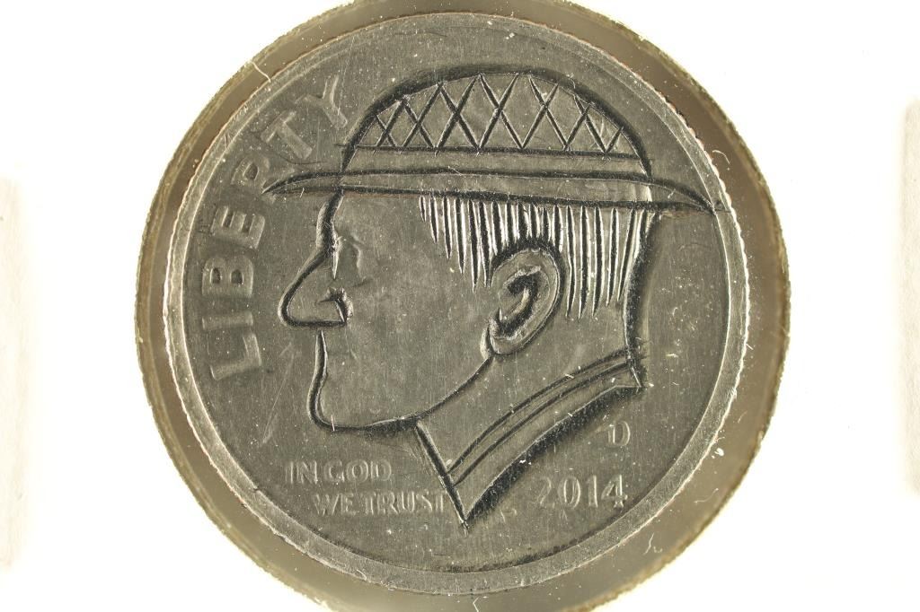 NEAT PIECE HAND ENGRAVED, USUALLY DO NOT SEE DIMES DONE UP