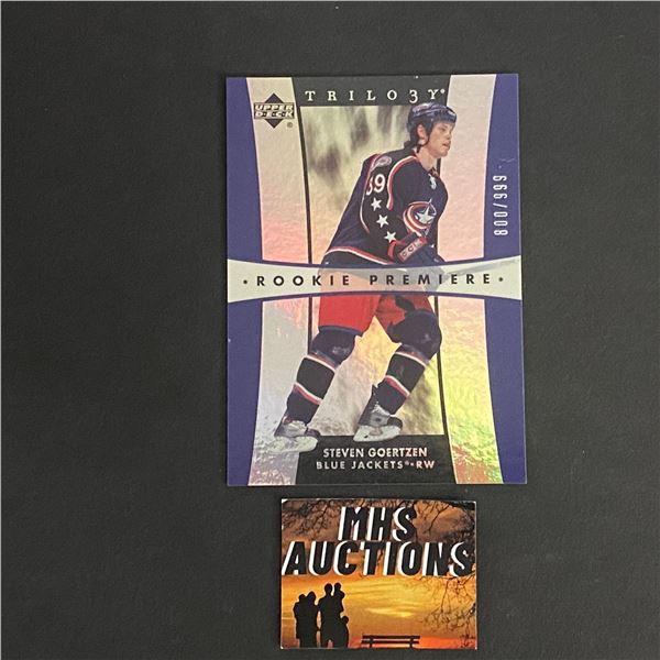 2005-06 U.D TRILOGY HOCKEY ROOKIE CARD STEVEN GOERTZEN HOCKEY CARD #800/999 ONLY 999 MADE (ref2738)