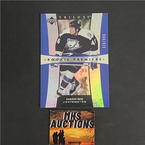 2005-06 U.D TRILOGY HOCKEY ROOKIE CARD DARREN REID HOCKEY CARD #326/999 ONLY 999 MADE