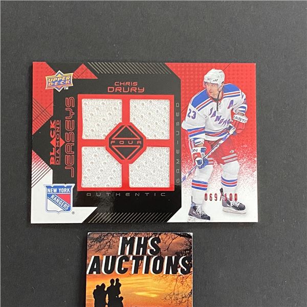 2008-09 BLACK DIAMOND CHRIS DRURY QUAD JERSEY CARD #069/100 ONLY 100 MADE