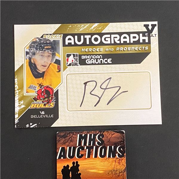 2011 IN THE GAME AUTOGRAPH BRENDAN GAUNCE HOCKEY CARD