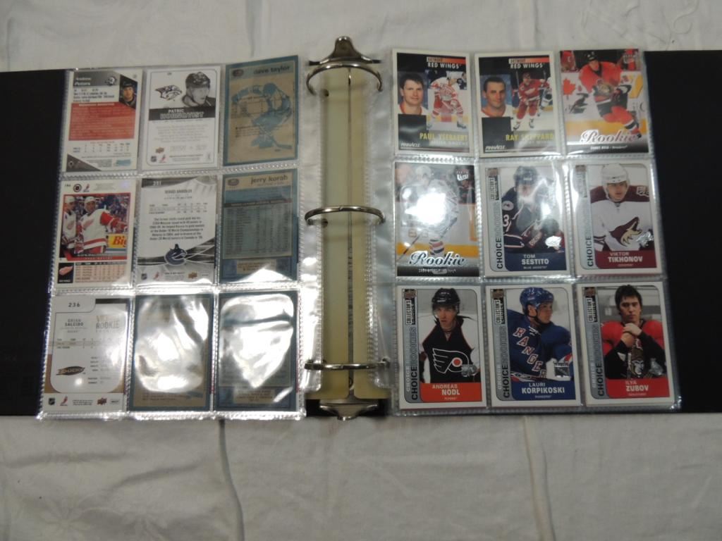 HOCKEY CARD MIXED MAKERS & DATES HOCKEY COLLECTIBLE TRADING CARDS BINDER FULL BINDER SHEETS AS SHOWN SEE PHOTO FOR MORE DETAILS.