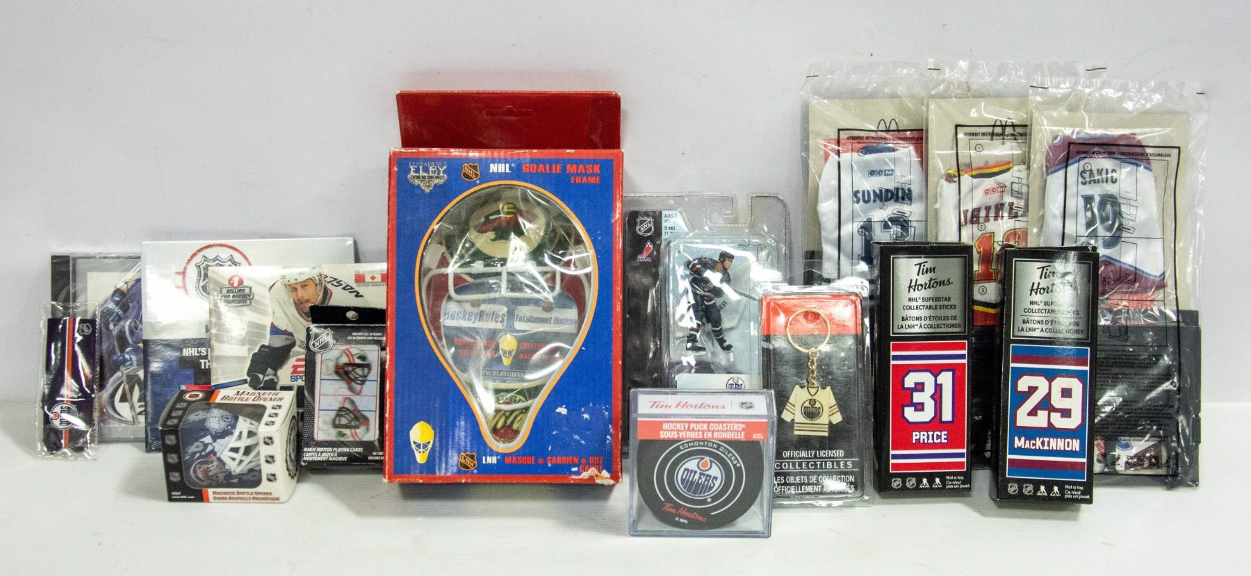MCDONALDS 3 MINI JERSEY, OILERS COASTERS, 2 TIM HORTON STICKSM MAGNETIC BOTTLE OPENER & 1 OILER, NHL MAGIC MOTION PLAYING CARDS, NHL OILERS CHRIS PRONGER OILERS FIGURINE & MORE**ALL ITEMS MUST BE REMOVED BY 5PM MONDAY, OCTOBER 17TH, 2022. ALL REMAINING ITEMS WILL BE SUBJECT TO A $6.00 PER DAY STORAGE CHARGE. ANY ITEMS REMAINING AFTER MONDAY, OCTOBER 29, 2022 WILL BE CONSIDERED FORFEITED. NO REFUNDS WILL BE ISSUED FOR FORFEITED ITEMS. TO SCHEDULE A PICK UP APPOINTMENT CLICK HERE