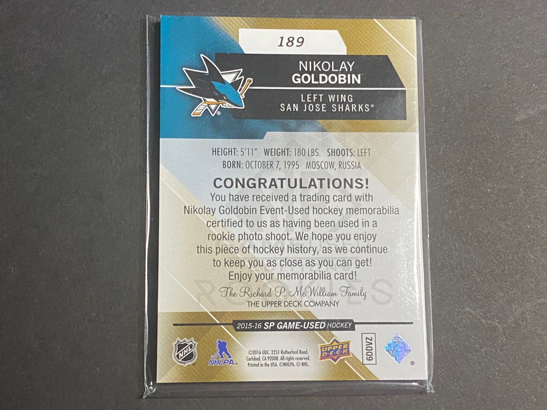 HOCKEY PATCH CARD NIKOLAY GOLDOBIN AUTHENTIC ROOKIES #D/99