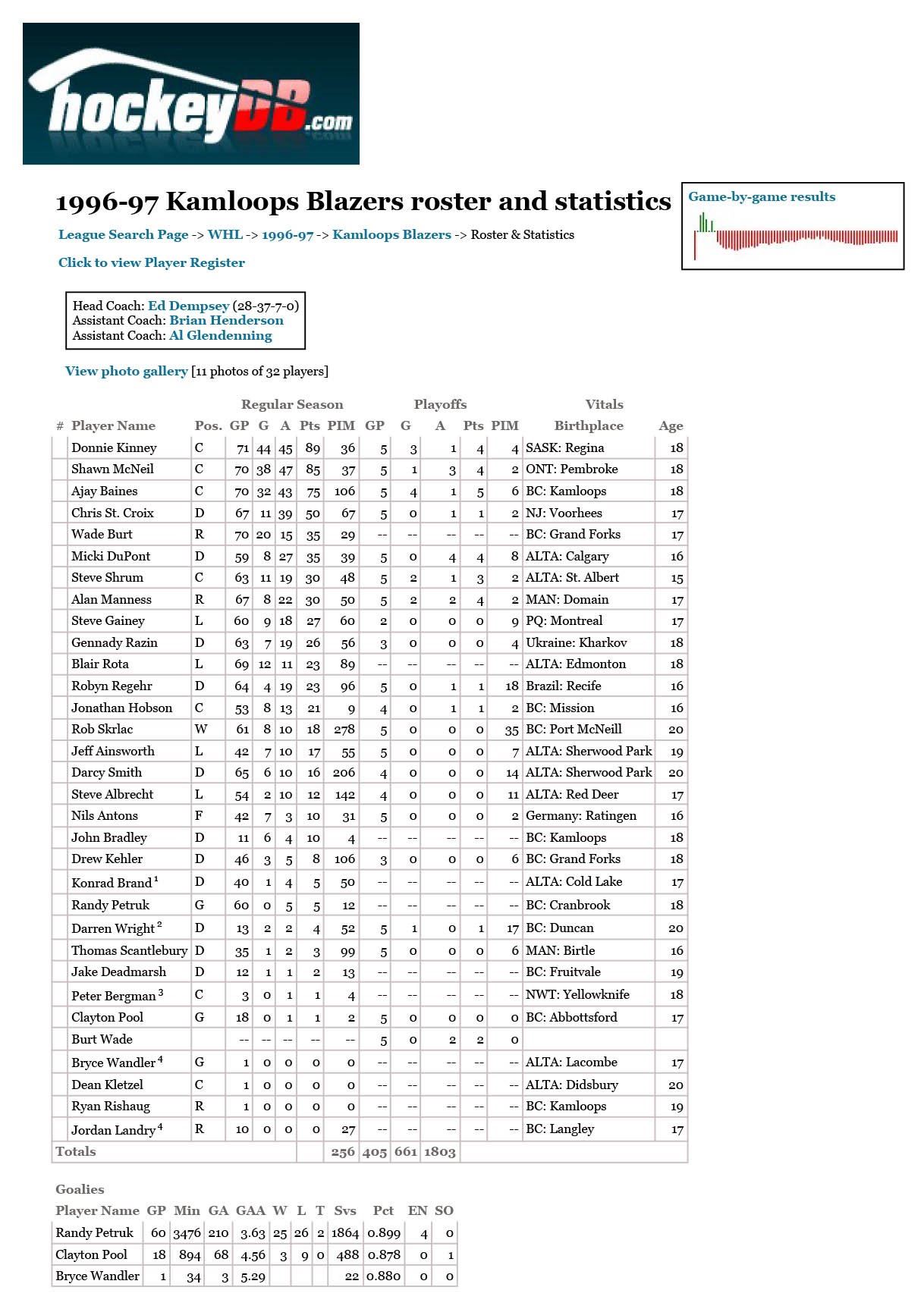HOCKEY PENNANT (KAMLOOPS BLAZERS) *1996-97*
