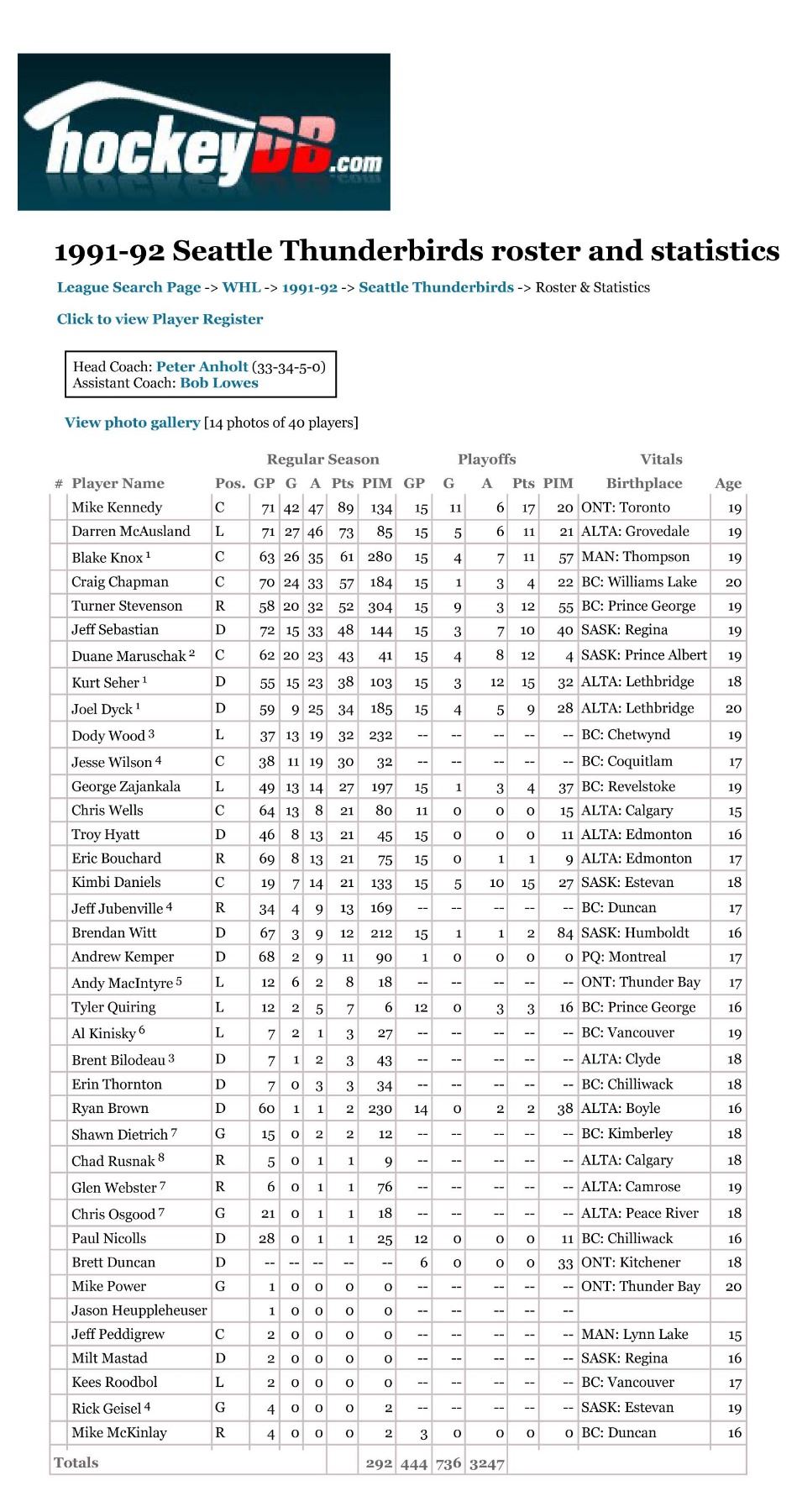 HOCKEY PENNANT (SEATTLE THUNDERBIRDS) *1991-92*