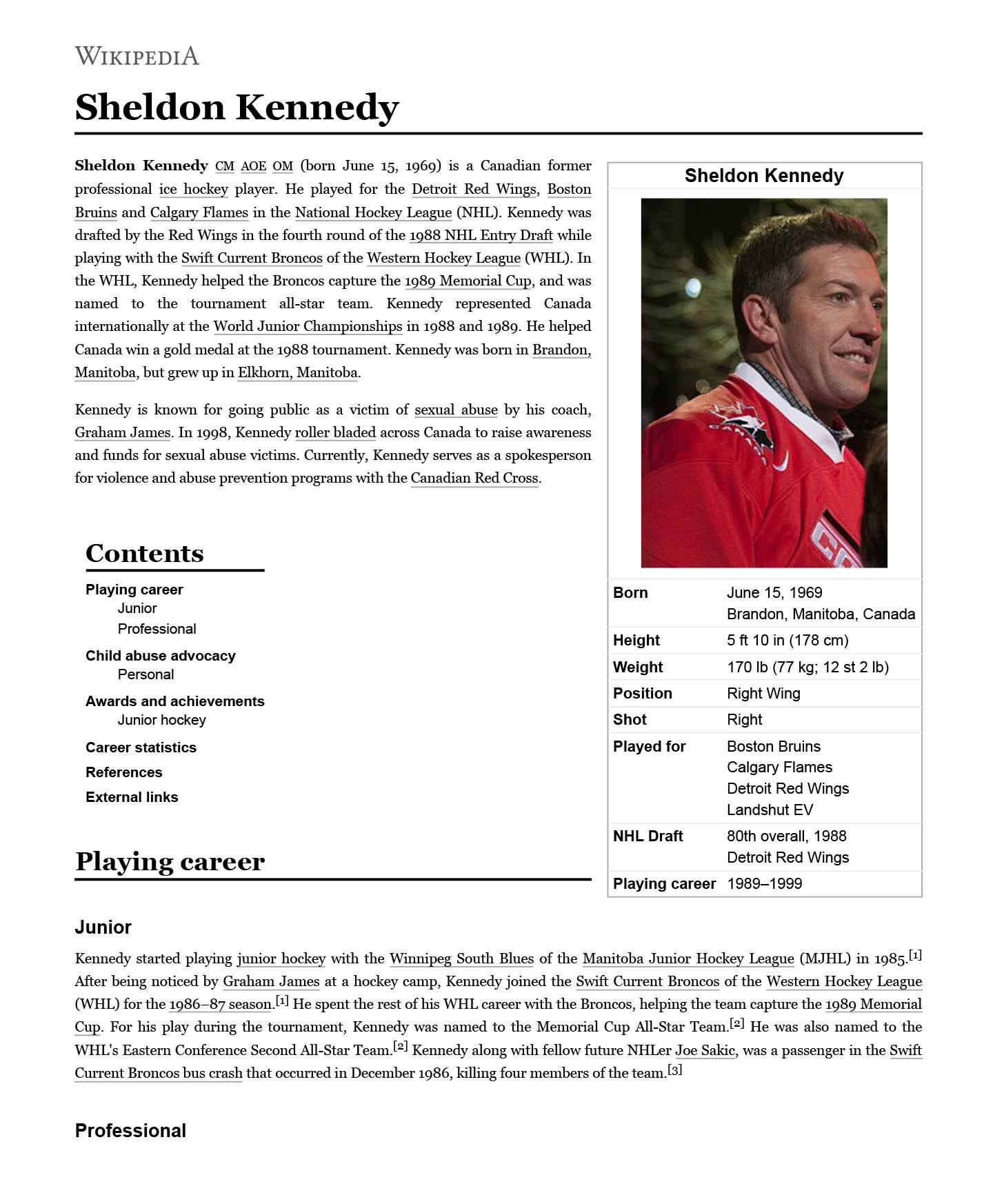 In the 1993-94 NHL season Sheldon Kennedy was traded to Winnipeg Jets (from Boston), due to the NHL lockout he was traded to Calgary and never played for Winnipeg