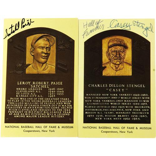 <B>Hall of Famers Signed Gold Plaques Lot of 113.</B></I> Tremendous break down value for a smart autograph dealer, or a wise investment for the collector. All are signed on the image side in NRMT or better ink or sharpie unless otherwise noted. All postcards themselves are in NRMT or better condition. Anderson (personalized), Appling (2), Averill (2), Bell (3), Carey (3, average EX), Chandler (4), Conlan (5), Coveleski (3), Cronin (3), Dean, Dickey, Feller, Ferrell (3), Frick, Gehringer (5), Gomez (signed on back), Greenberg (VG-EX), Grimes (2), Haines (2), Herman (5, 1 is VG-EX), Hoyt (2), Hubbell (3), Irvin (2), Travis Jackson, Judy Johnson (VG-EX), Kaline (VG-EX), Kell (2), Kelly (5), Koufax (2), Lyons (2), Lemon (3), Leonard (2), Lopez (2), Marquard (4), Mathews, McCarthy (2), Mize, Musial, Paige, Reese (2), Brooks Robinson (3), Roush (3), Ruffing (3, 1 VG), Sewell, Snider (3), Stengel (2), Terry (4), Lloyd Waner (3), Wheat (signed on back), Wynn. <I>LOA from PSA/DNA.</B></I>