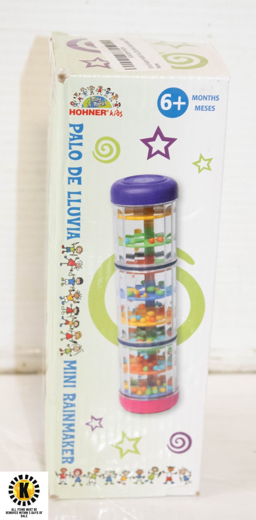A FUN AND COLORFUL TOY THAT MAKES THE SOOTHING SOUND OF RAIN EVERY TIME IT IS TURNED. WATCH THE COLORFUL BEADS CASCADE THROUGH THE RAINMAKER