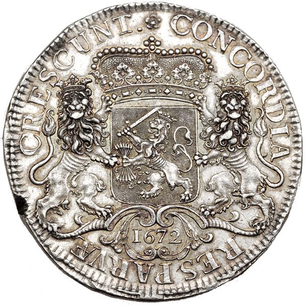 HOLANDA. Doble ducatón. 1672. 64,72g. DAV-493.2. Pequeño defecto de cospel en el canto. EBC. Rara.
