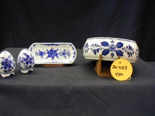 HOLLAND DELFT BLUE HND. PTD. INCLUDES (1) 5in DIA. 2inT BOWL SIGNED 409 (BASE BOTTOM FLAKE), (1) 3 PC S & P SHAKER W/TRAY SIGNED M.S.I. EXCELLENT