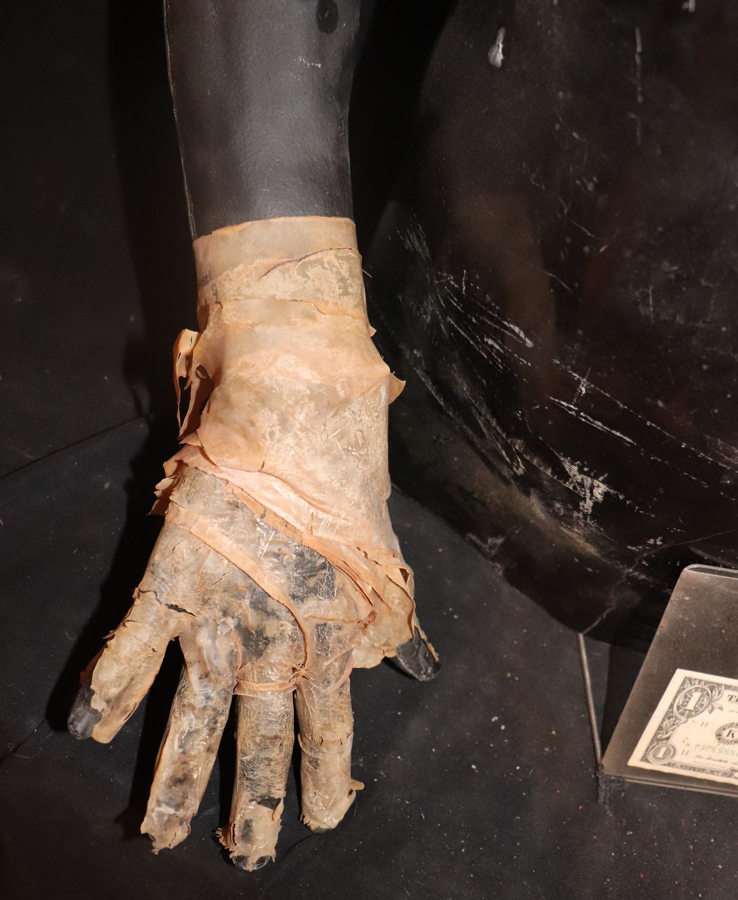 Unfortunately, all of the skins are gone but this is the HERO ANIMATRONIC KEVIN BACON puppet from HOLLOW MAN! The poured latex glove remains on the right hand.
