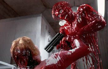 This is the screen used, and matched bloody sweater worn by Elizabeth Shue in the Sci'Fi hit HOLLOWMAN. I call this Screen Matched because it is the only bloody one used. unfortunately the scenes with the fire sprinklers followed washing most of the blood away.