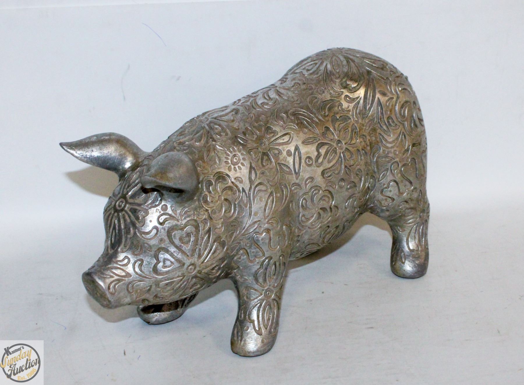 HOME DECOR ENGRAVED METAL PIG 14 X7 INCHES