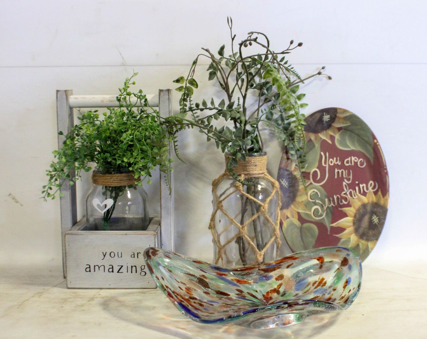 HOME DECOR / FAKE PLANTS IN POTS + PLAQUE