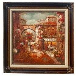 "FRENCH CAFE" - ORIGINAL HAND PAINTED OIL ON CANVAS - PROFFESSIONALLY FRAMED - IMAGE 20X24" - FRAMED 31X35"