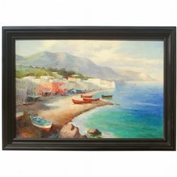 "3 RED BOATS" - ORIGINAL HAND PAINTED OIL ON CANVAS - PROFFESSIONALLY FRAMED - IMAGE 24X36" - FRAMED 30X42"