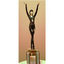 "DOURGA" - BRONZE AND IVORY SCULPTURE - AFTER CHIPARUS - MUTLI COLOR FINISH - HAND CARVED IVORY - MOUNTED ON MARBLE AND ONYX BASE - SIGNE...
