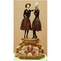 "THE SECRET" - BRONZE AND IVORY SCULPTURE - AFTER CHIPARUS - MUTLI COLOR FINISH - HAND CARVED IVORY - MOUNTED ON MARBLE AND ONYX BASE - S...