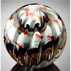 RED & WHITE RIPPLE - ART GLASS SPHERE / PAPERWEIGHT - HAND CRAFTED - 4" DIAMETER