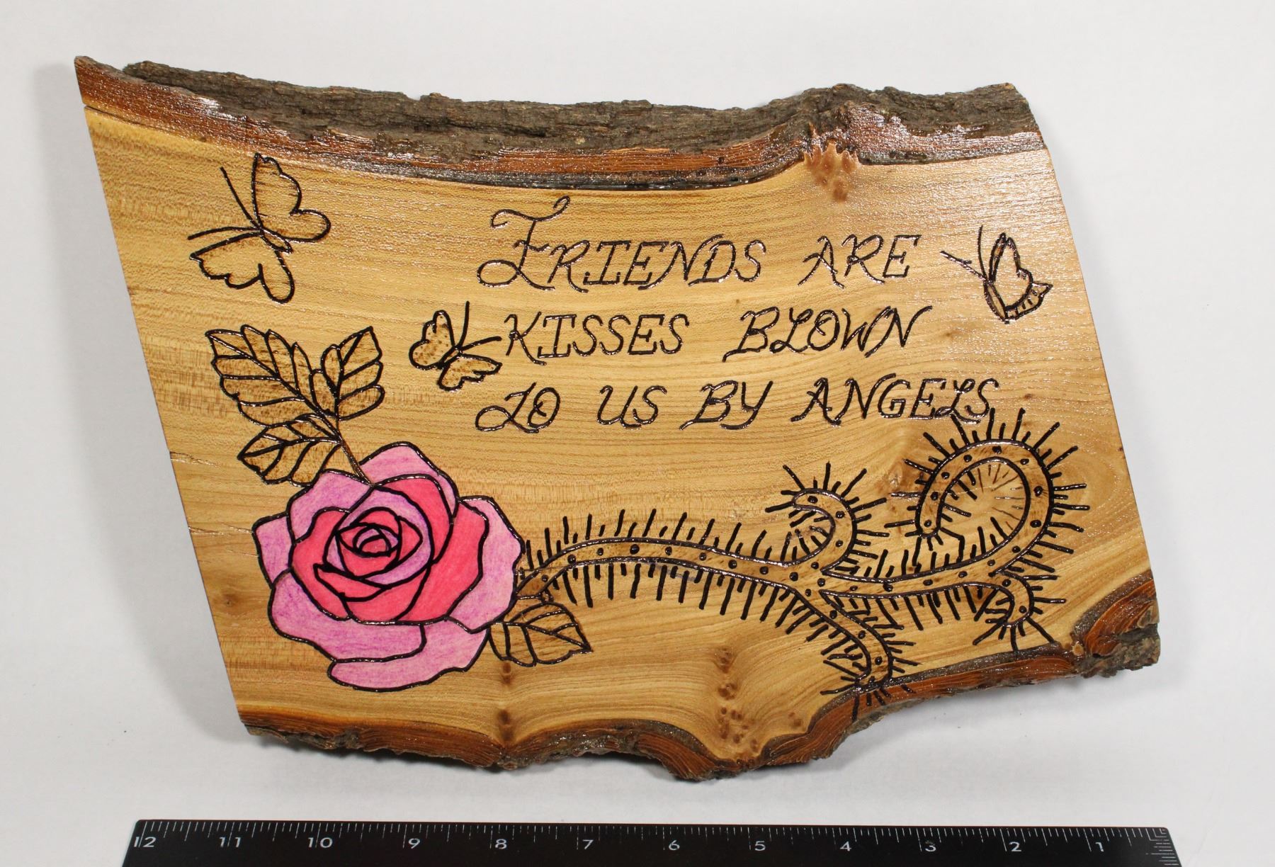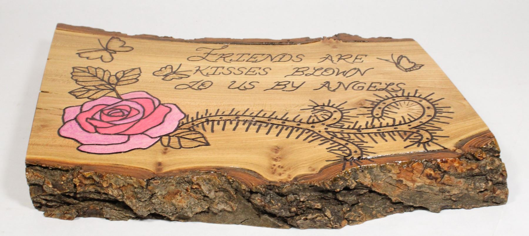 ANGELS. WOOD BURNED REAL PIECE OF WOOD.