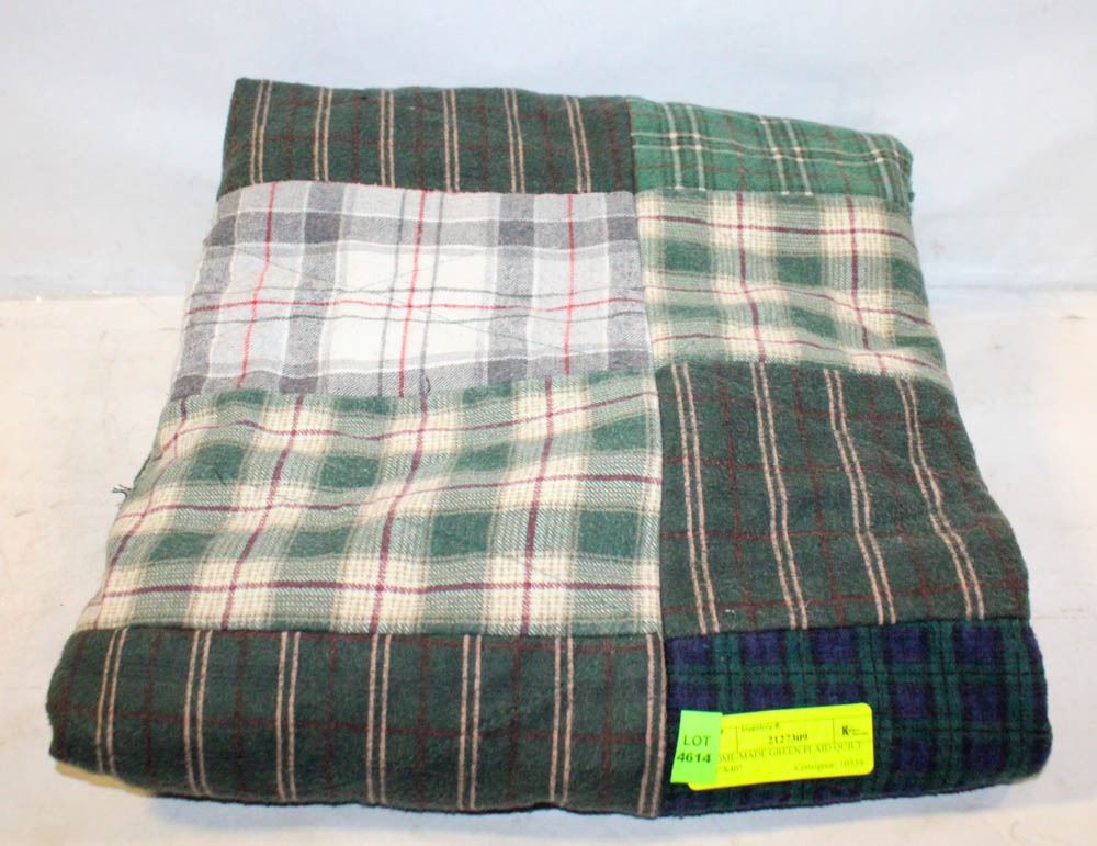 HOME-MADE GREEN PLAID QUILT 54"X40"