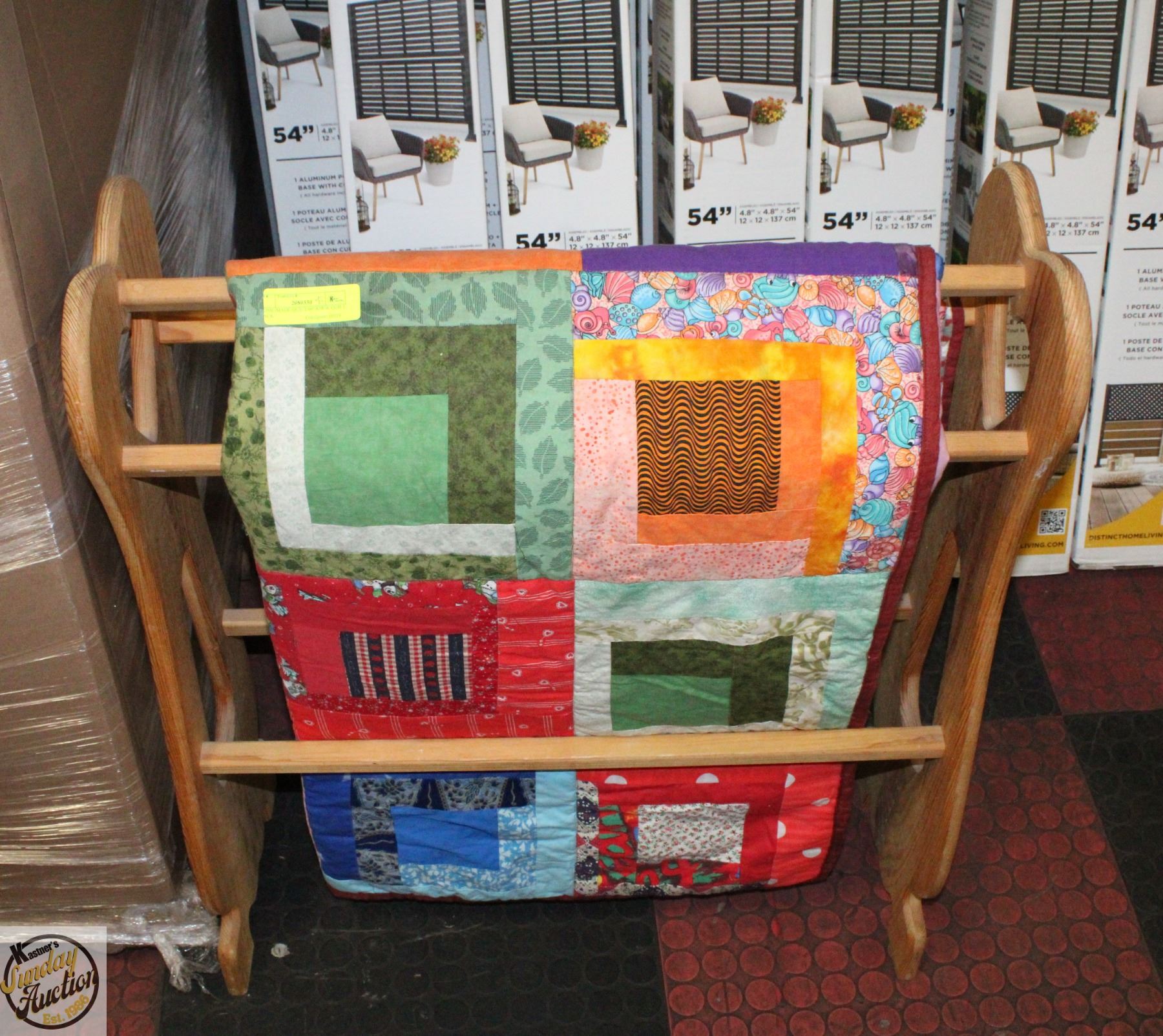 HOME-MADE QUILT 66 X58 & QUILT RACK