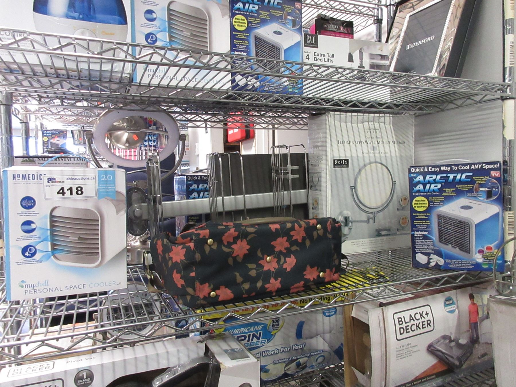 HOMEDICS PERSONAL SPACE COOLER, ARCTIC AIR COOLER, SHOWER CADDY, TRAVEL BAG, MIRROR