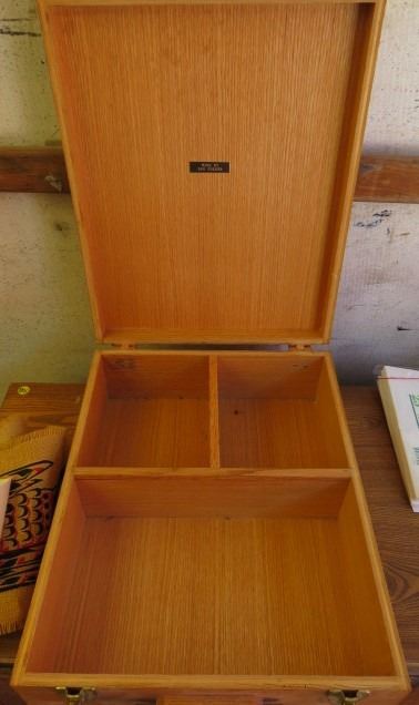 HOMEMADE FIRST AID BOX (WOOD) *MADE BY ROB EDLUND* (HANDLE WITH CLASP CLOSURES) *OLD RECORD BOOK* ( COASTAL WALL HANGING) *ENVELOPES*