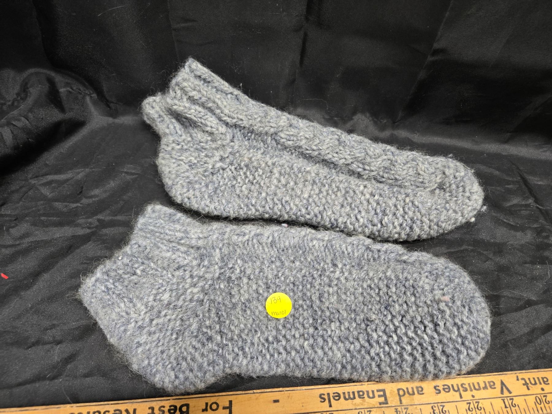 HOMEMADE GREY WOOL SLIPPERS. APPROX LADIES SIZE 9