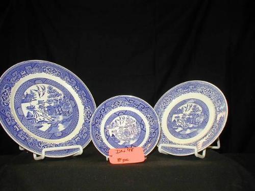 HOMER LAUGHLIN inWILLOW WAREin INCLUDES (3) 9 1/4in PLATES, (3) 7 1/4in PLATES, (2) SAUCERS, 8 PCS