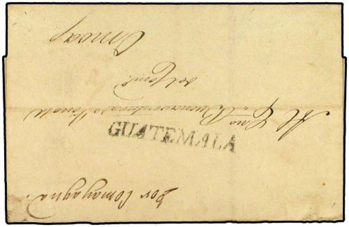 1827 GUATEMALA a OMOA. Marca lineal GUATEMALA, manuscrito ´Por Comayagua´. MAGNIFICA Y RARA.