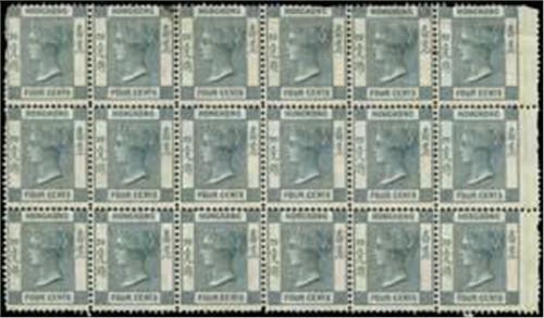 1863-71 4c grey (SG 9) block of 18 (6 x 3) with wing margins at right, various faults incl seven affected by creasing, fourteen u/m, cat £2,340+